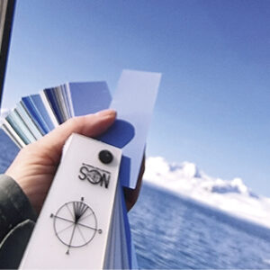 Hon hade med sig NCS-block med över tusen färgprover som stöd för att hitta fram till rätt kulörer. Till exempel kunde hon jämföra färgprover i blåturkosa nyanser för att undersöka havsvattnets färgskala.